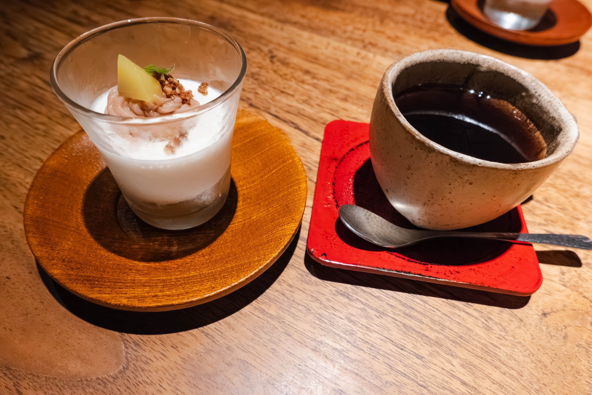 甘味 栗羊羹、吟醸酒粕ティラミスとコーヒー