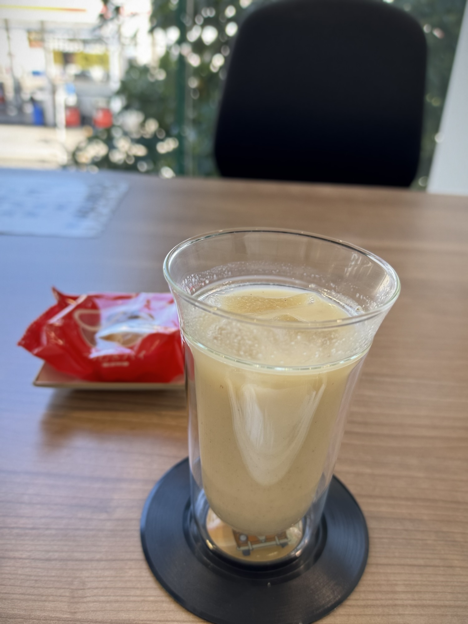ディーラーで出してくれる月替わりの飲み物が個性的で好き。今月はさつまいもミルクでした。