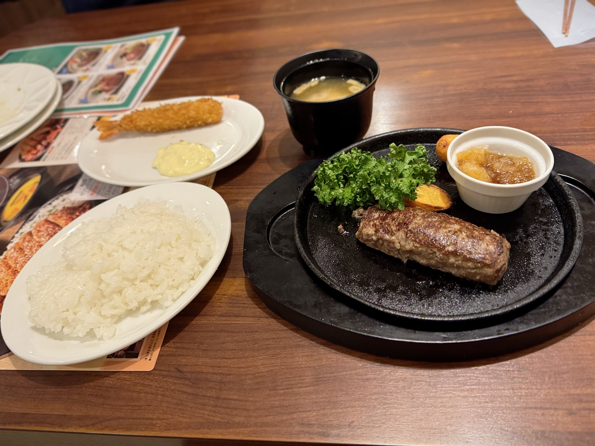 前日からあまりお肉を食べていなかったので、帰りに近所のデニーズに寄って、がっつりハンバーグを食べて旅を締めくくりました。