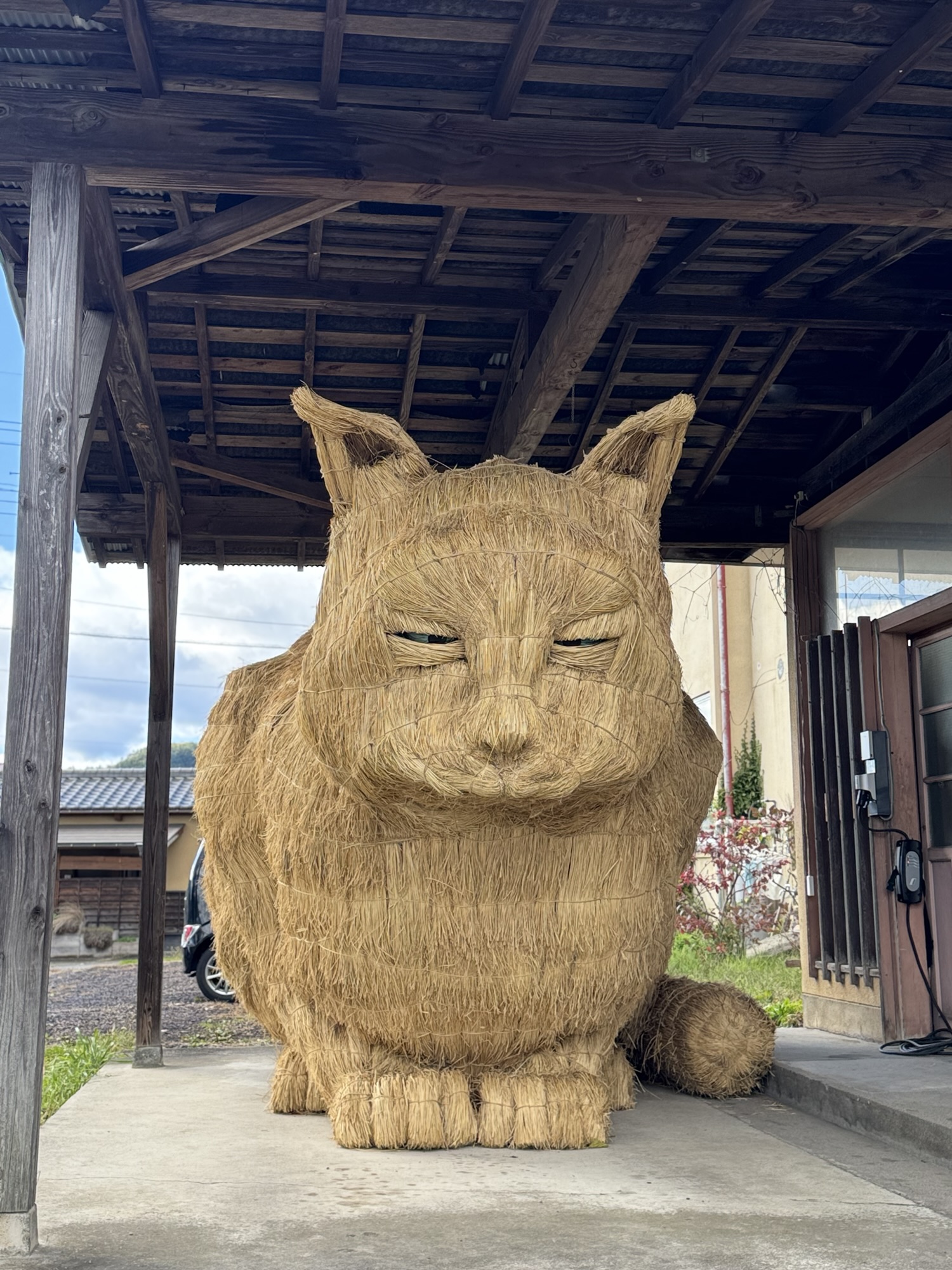 天気もいい事だし、少しだけ周辺を歩いてみます。わらで作ったネコちゃんがいました。