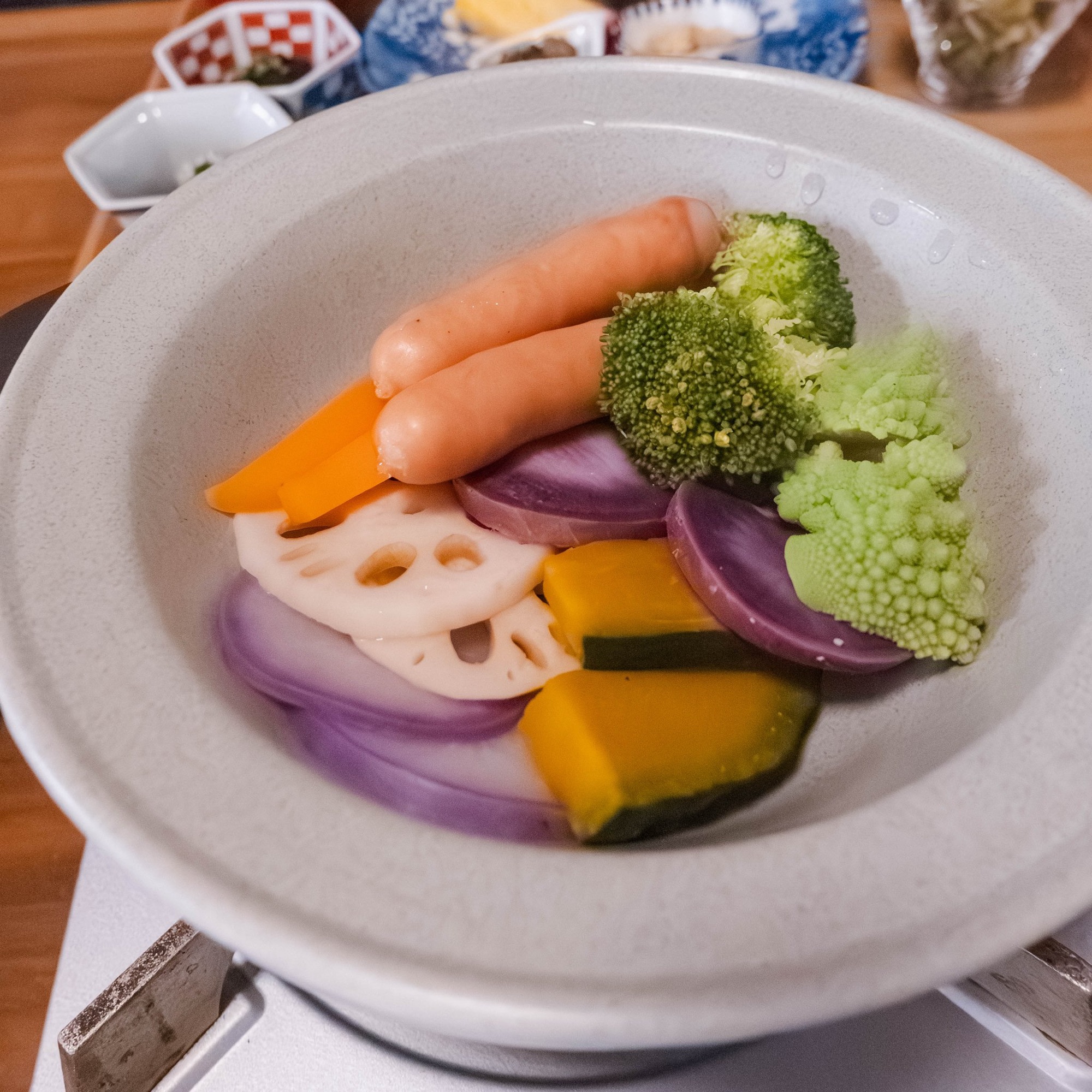 8時から朝食。朝ごはんも野菜たっぷりでした。