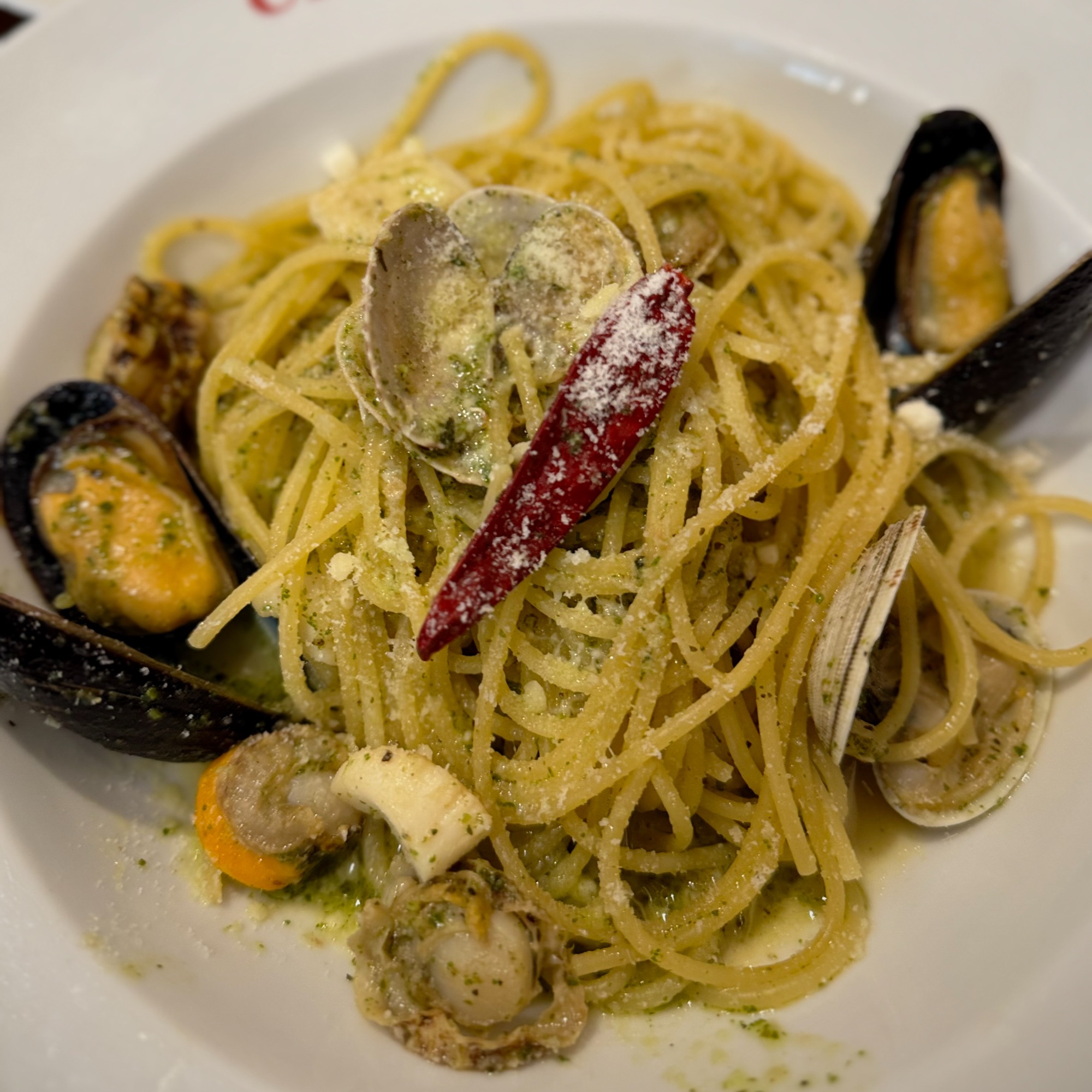 こちらはパスタ(ペスカトーレジェノベーゼソース)